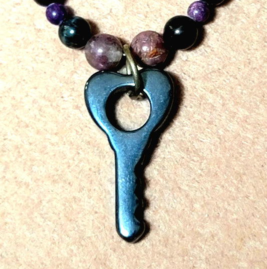 Hematite Key: Sugilite, Pink Tourmaline & Blue Tiger Eye