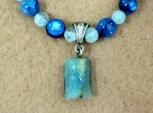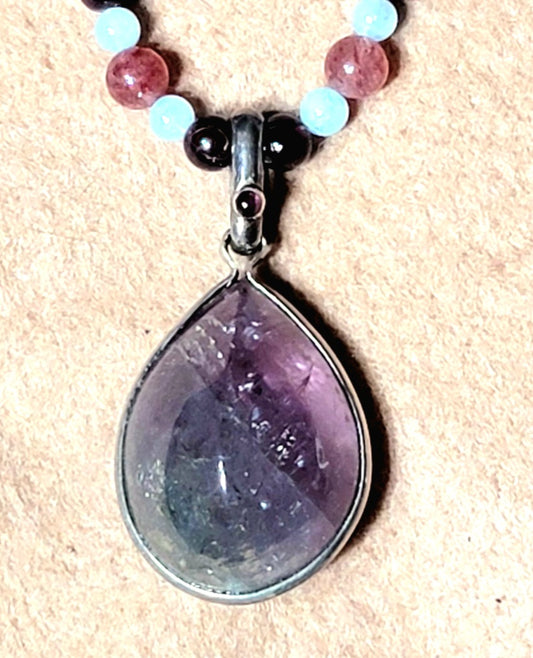 Bi Color Tourmaline Pendant: Garnet, Aquamarine Angelite Tourmaline & Rhodolite.