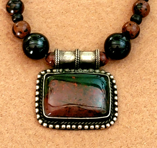 Mahogany Obsidian Pendant: Black Onyx, Mahogany Obsidian, Bone & Reed
