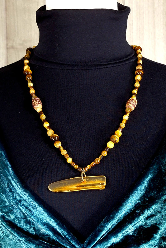 Amber Pendant; Brown & Yellow Tiger Eye & Bone