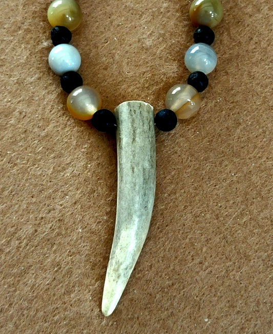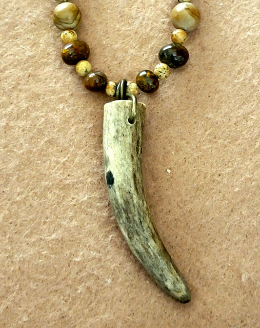 Antler Point: Brown Tiger Eye, Jasper, Agate, Bone & Seed