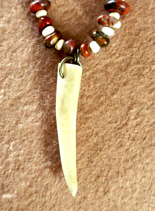 Antler Point: Red Tiger Eye, Fire Agate, Carnelian, Bone & Shell