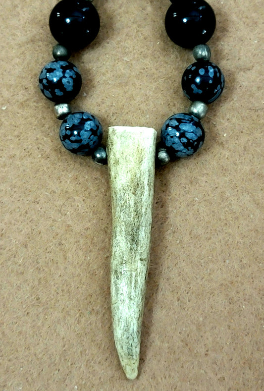 Antler Point: SnowFlake Obsidian, Black Onyx & Kukui Nut
