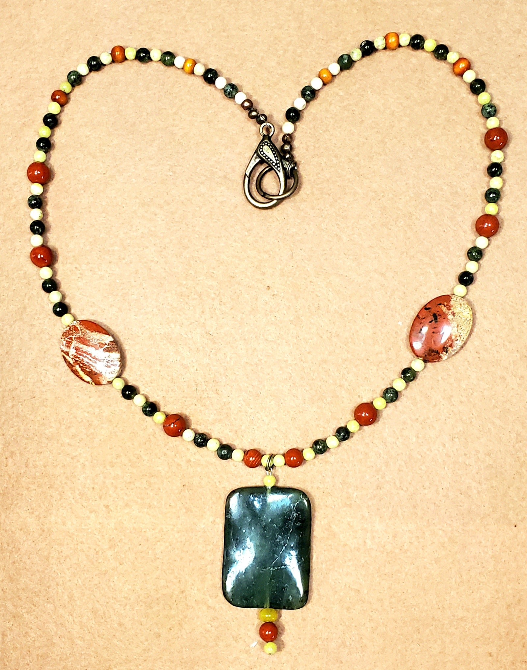 Jade Ribbon Drop Bead: Cappuccino Jasper, Red Jasper & Yellow Turquoise.