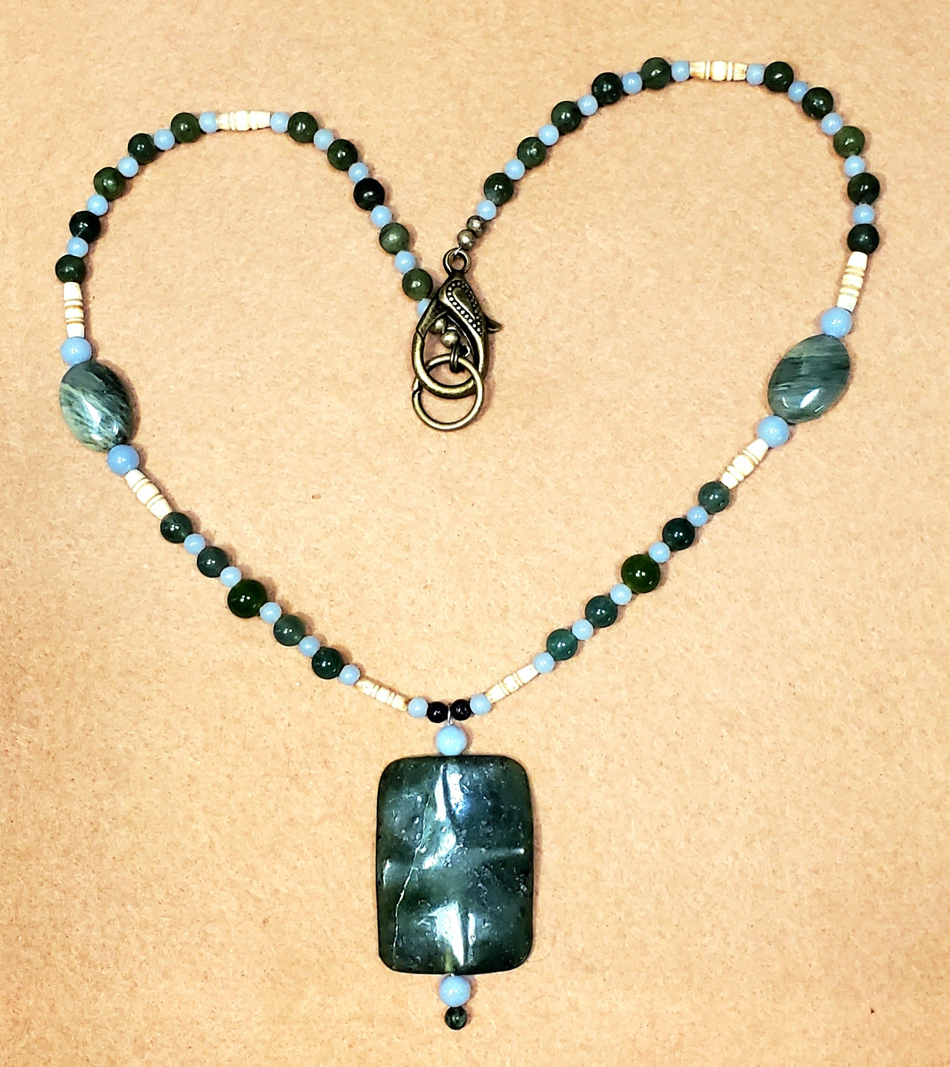 Jade Ribbon Drop Bead: Angelite, Adventurine & Bone
