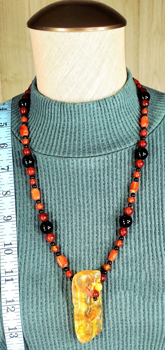 Amber Pendant: Carnelian & Black Onyx