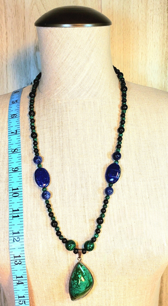 Necklace one: Malachite, Sodalite, Tourmaline & Lapis