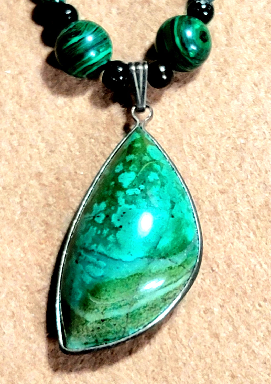 Two necklaces with Copper World Malachite Pendants.