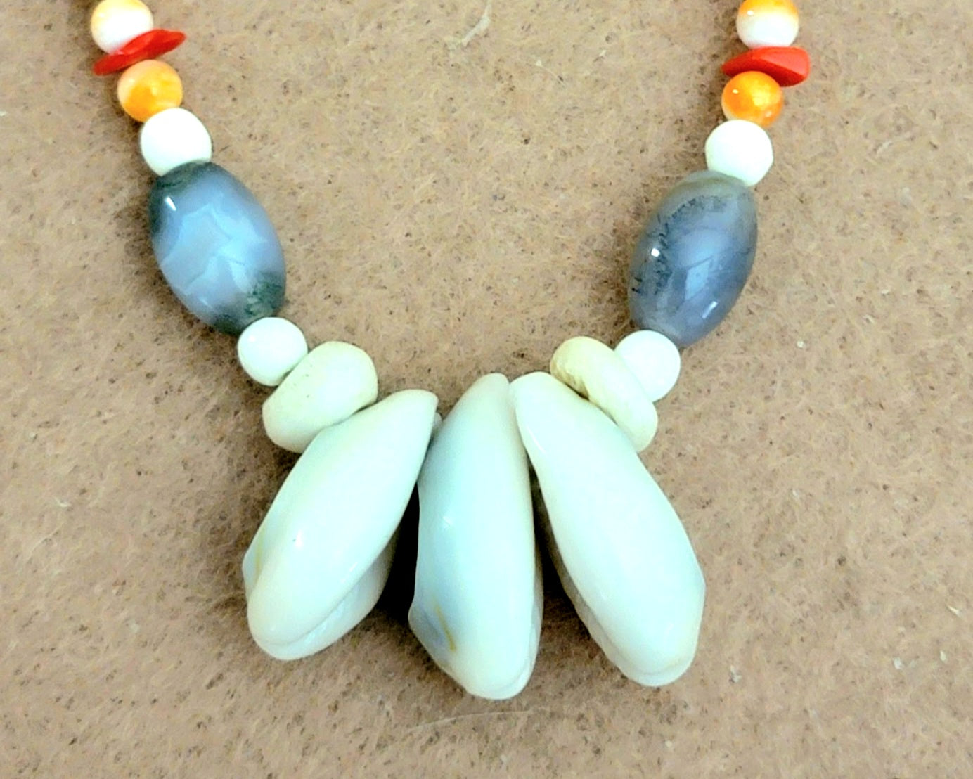 3 Shell Necklace: Abalone, Agate, Oyster Shell, Bone, Coral & Pearl