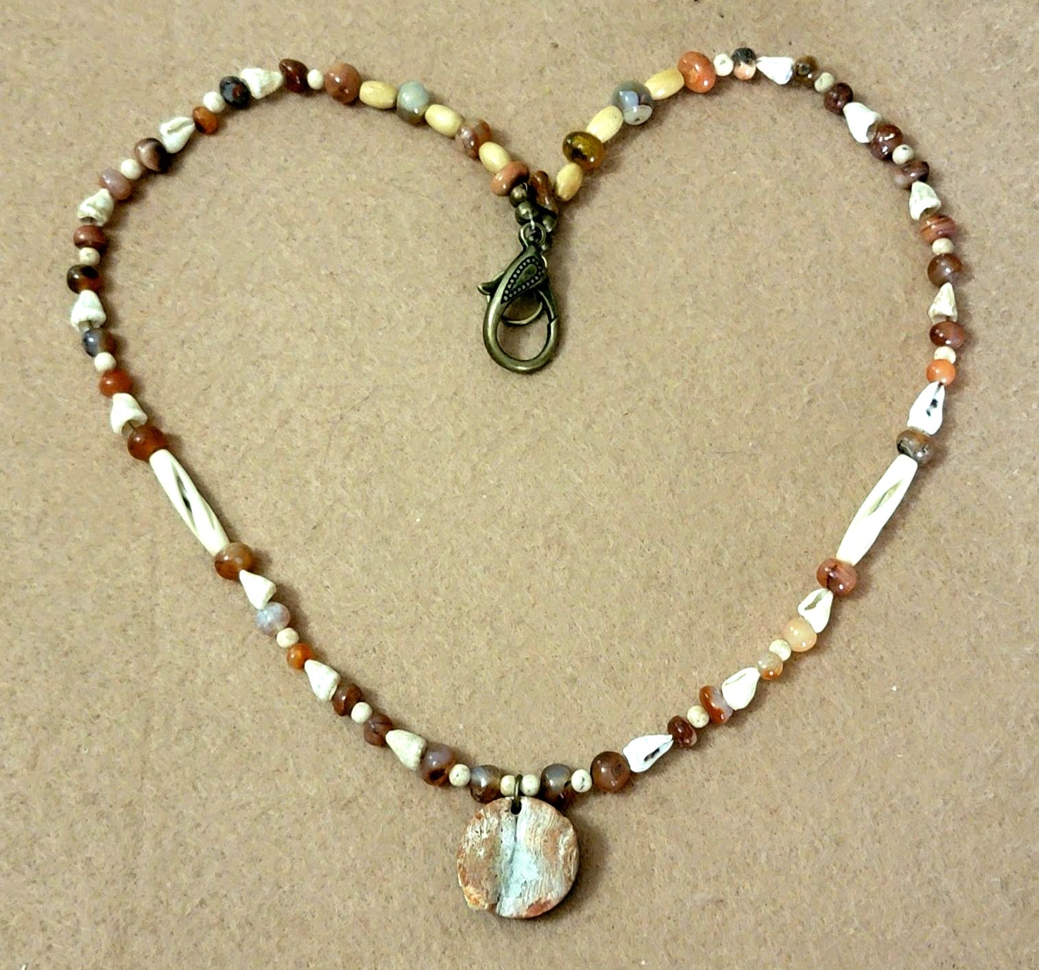 Mother of Pearl Button Pendant: Agate, Bone, Shell & Seed