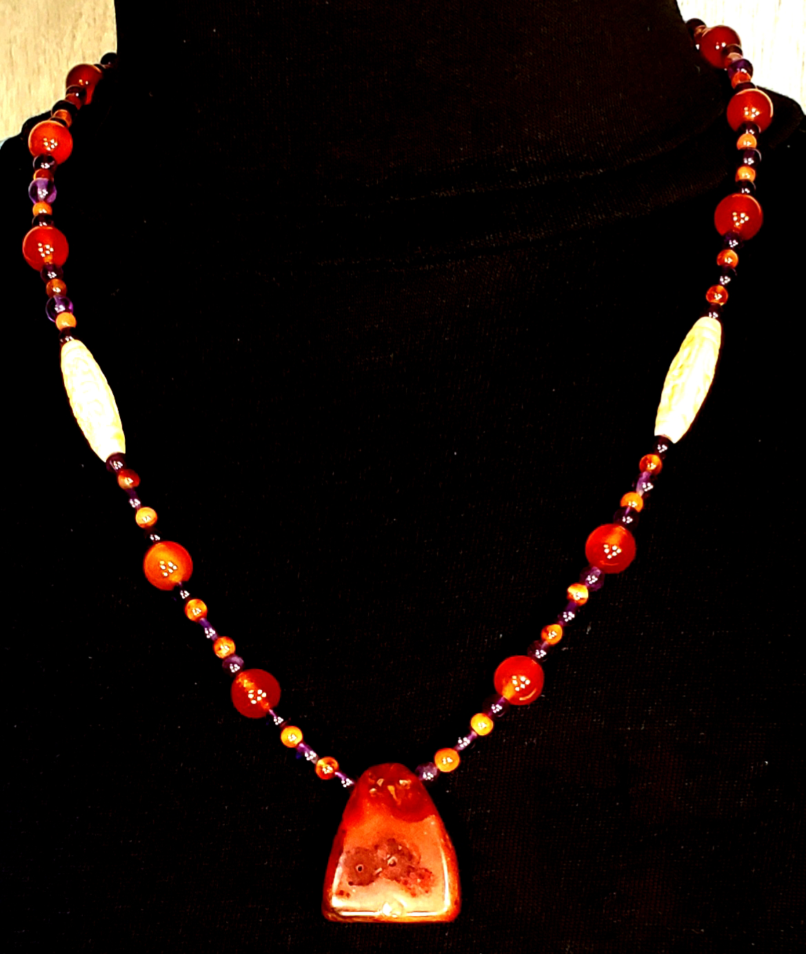Indus Valley Carnelian Pendant: Amethyst, Bone & Carnelian
