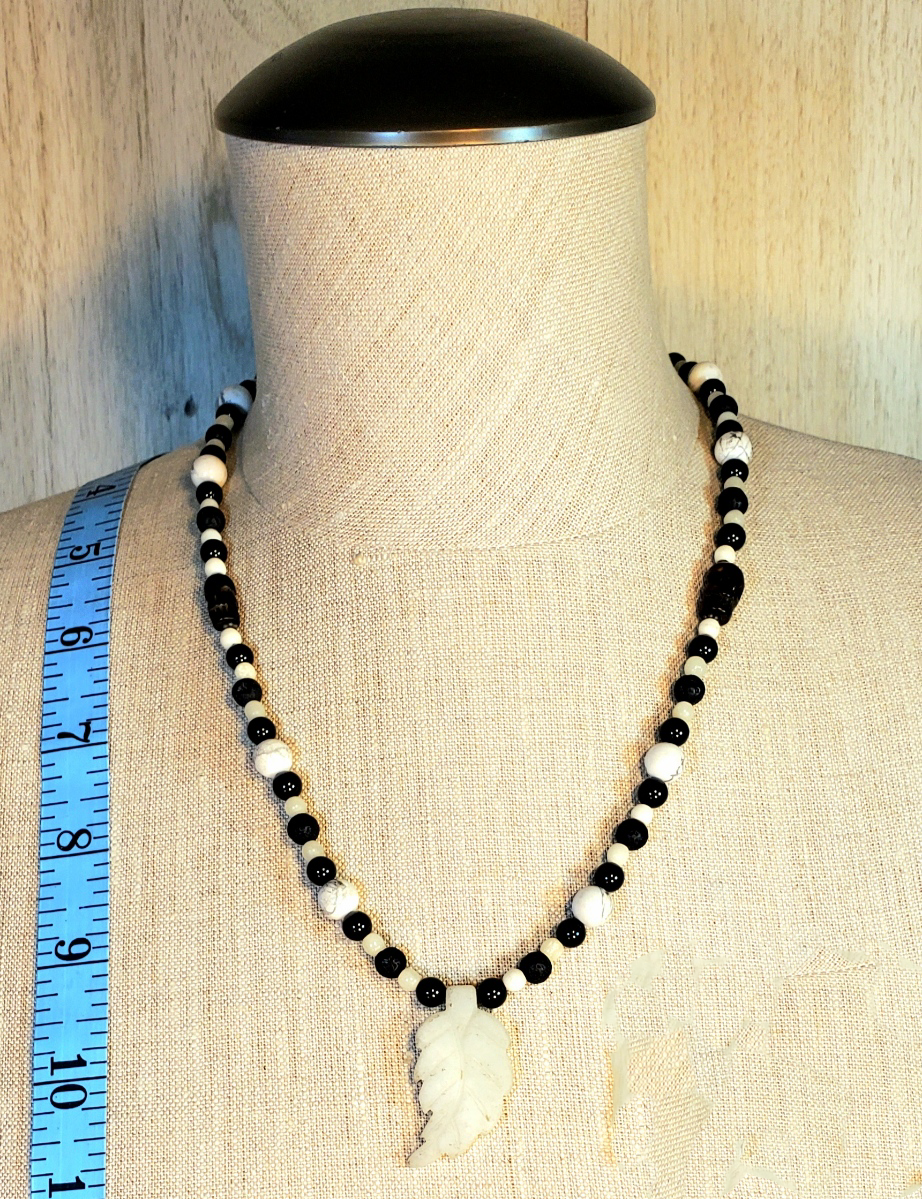 Agate Leaf Pendant: Black Tourmaline, Howlite, Bone & Lava