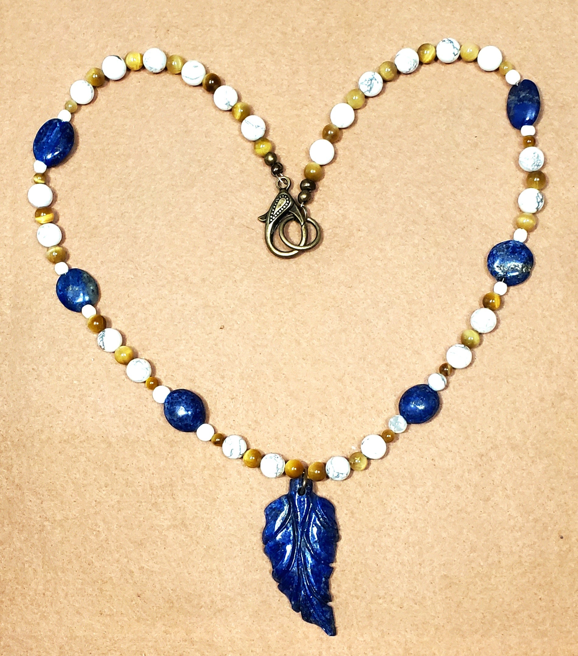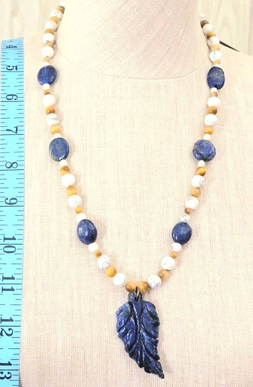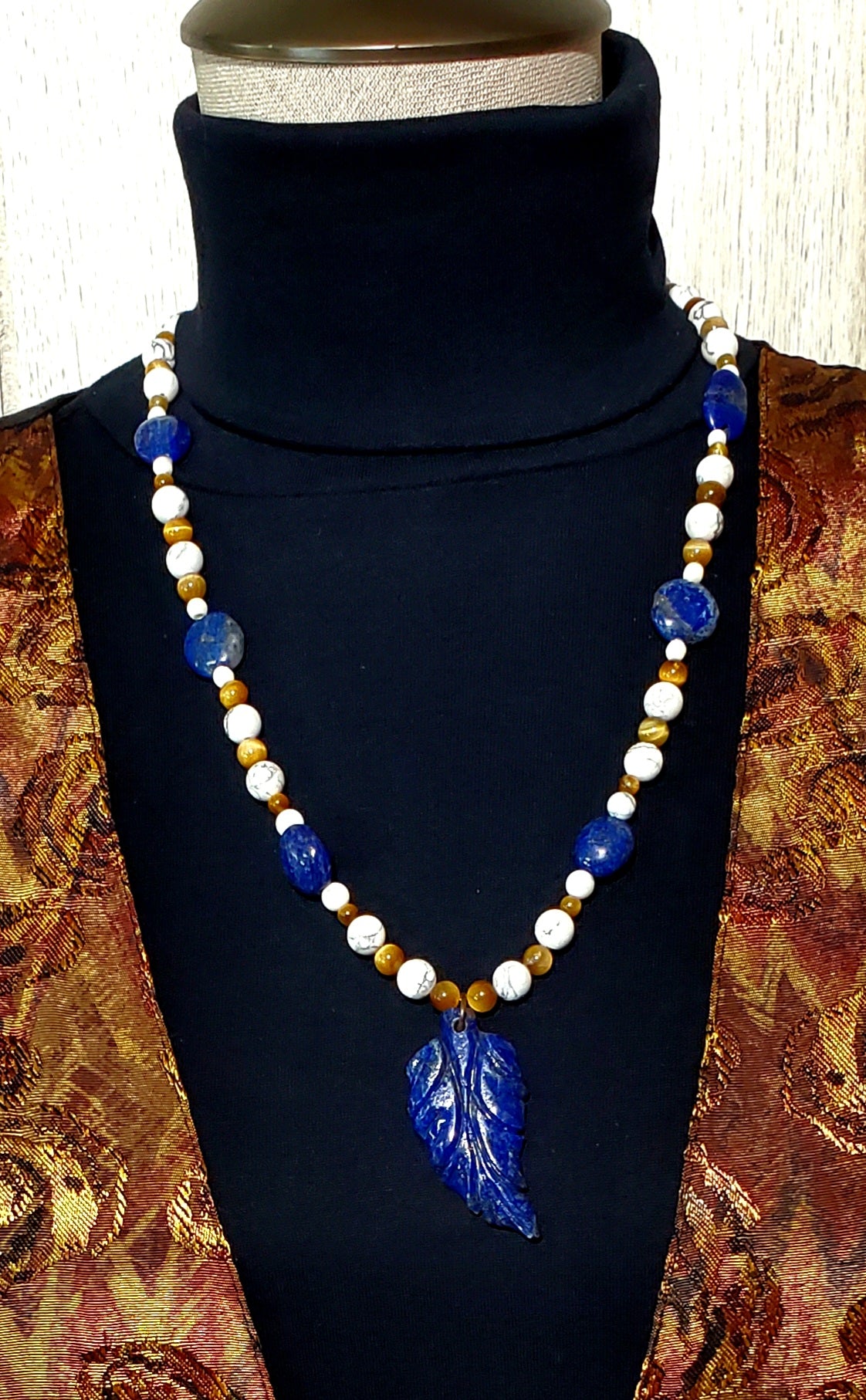 Lapis Leaf Pendant: Yellow Tiger Eye, Howlite & Lapis