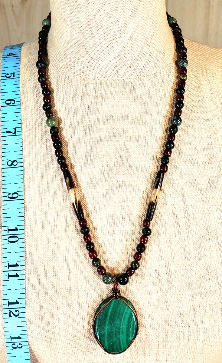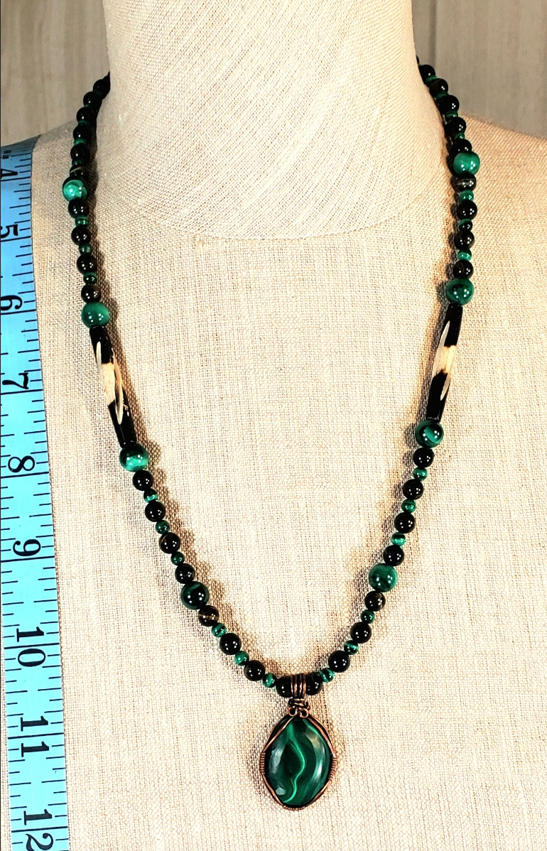 Necklace One: Malachite, Nephrite, Kambaba Jasper & Bone.