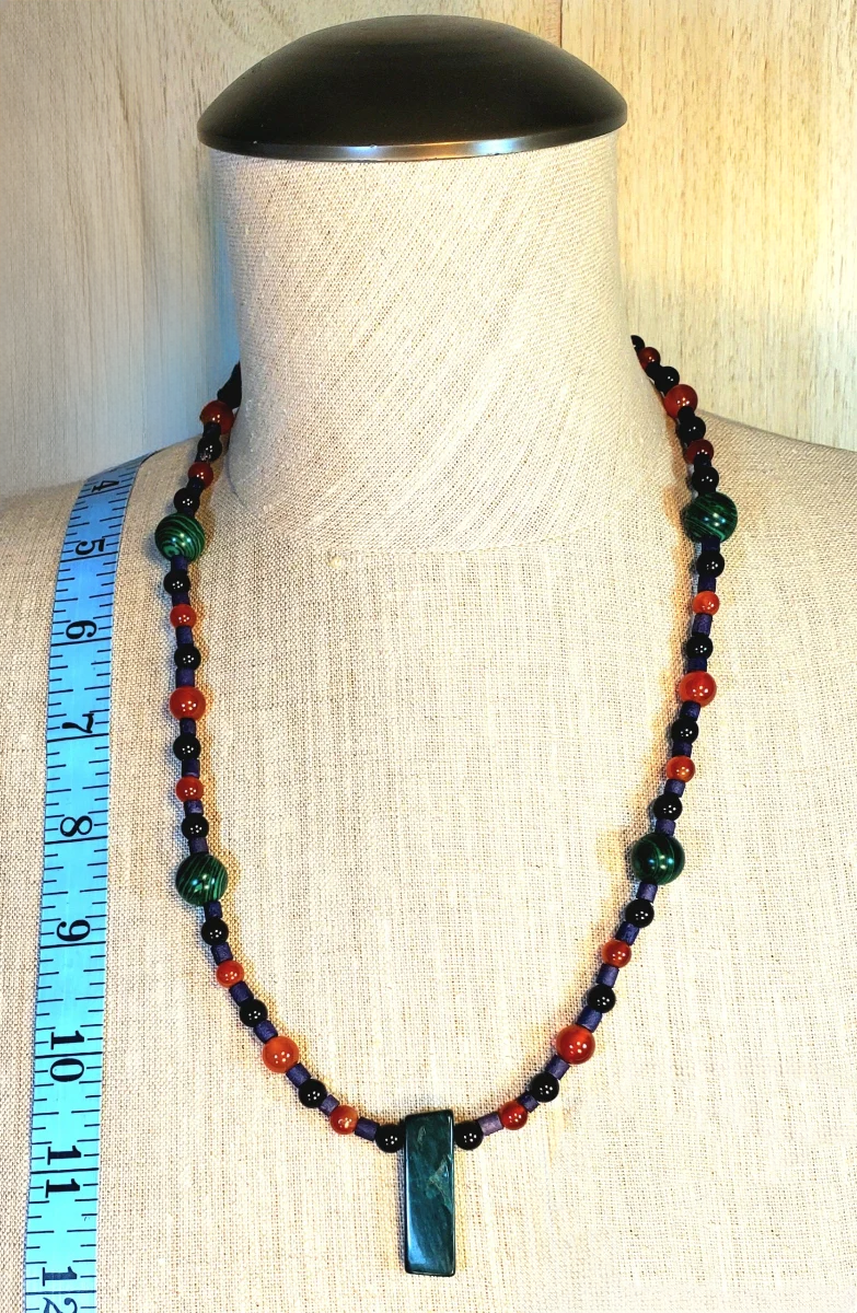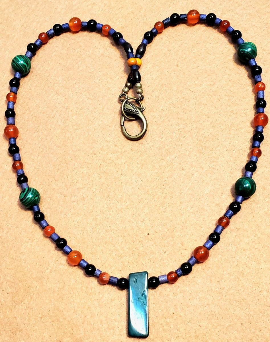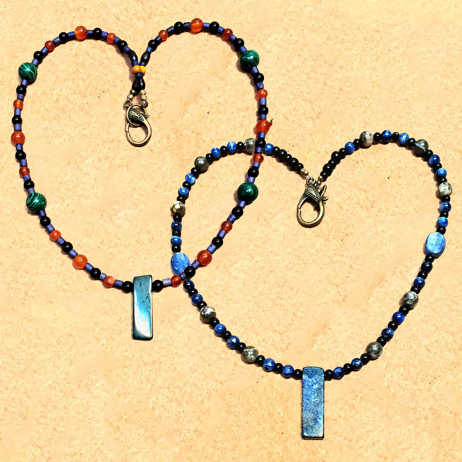 Necklace two: Black Tourmaline, Carnelian, Malachite & Reed