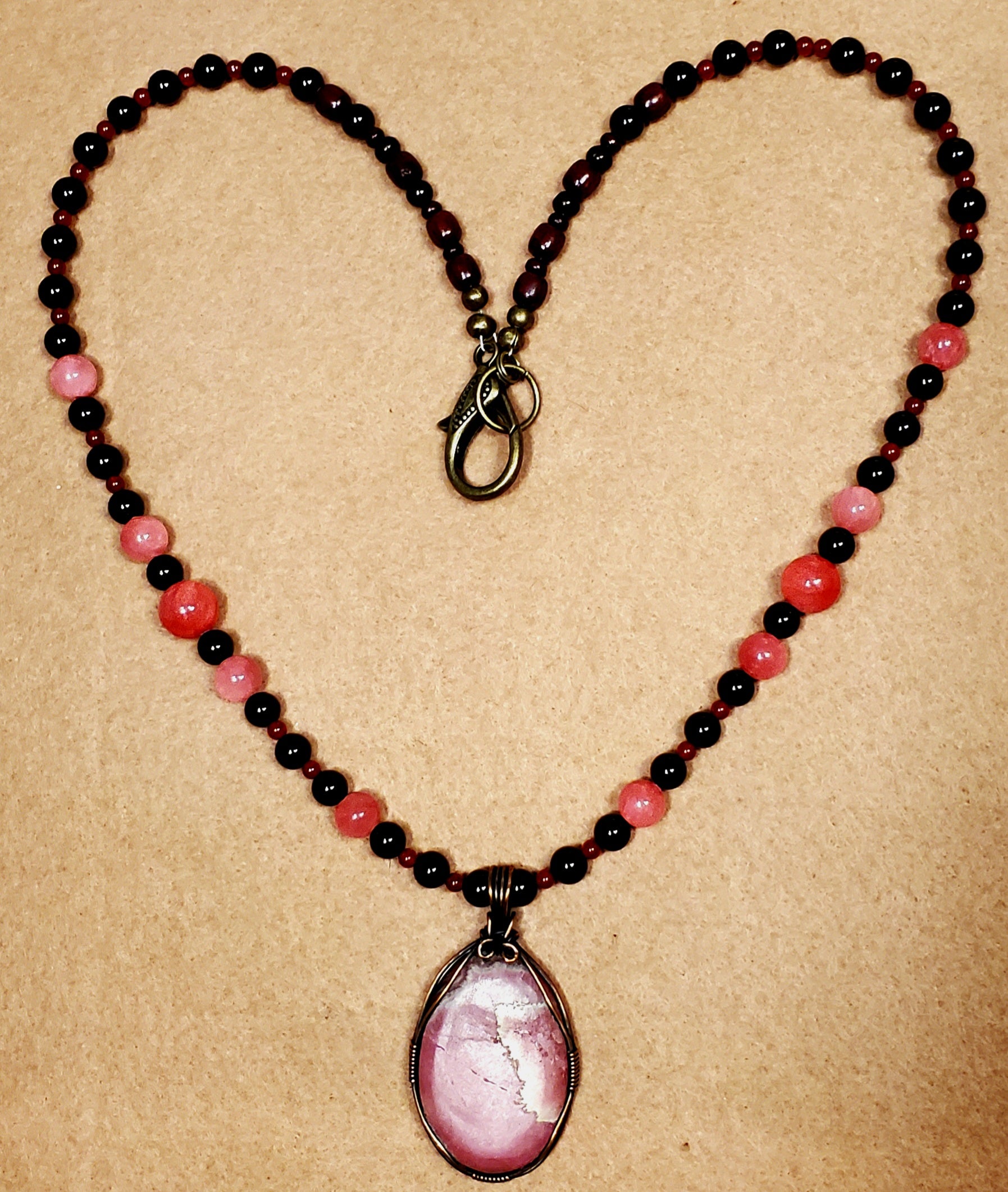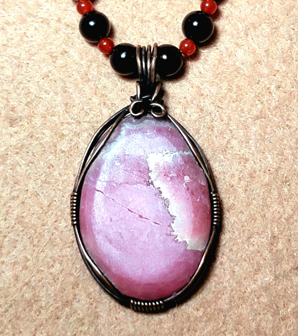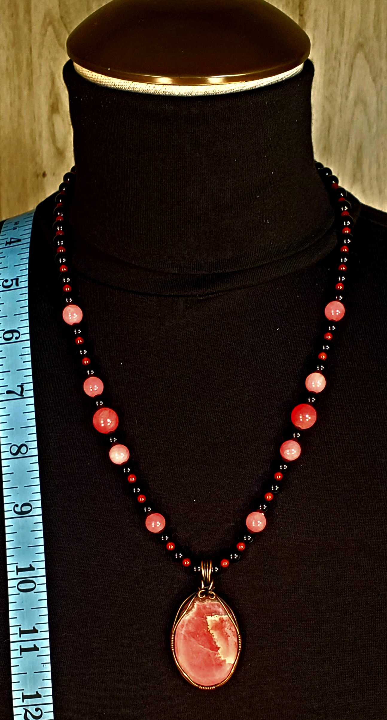 Rhodochrosite Cabochon: Black Tourmaline, Rose Quarts & Carnelian