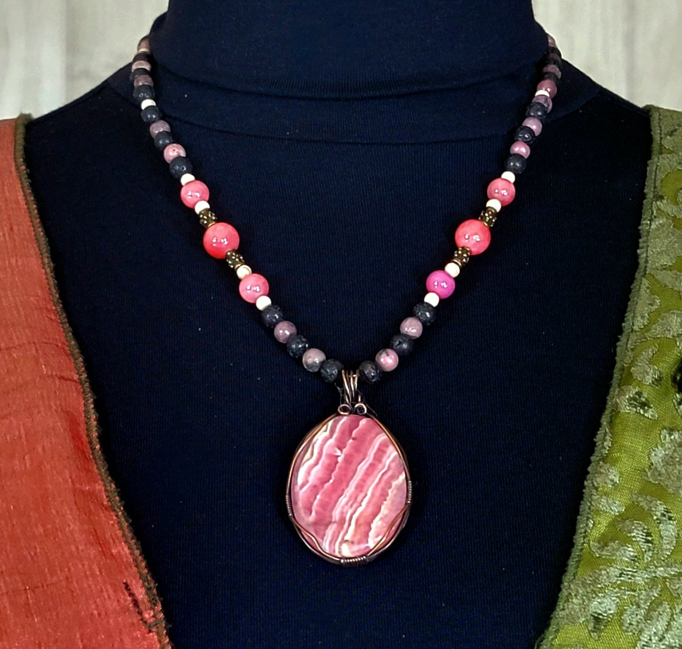 Rhodochrosite Cabochon: Rose Quarts, Rhodonite, Lava & Seed