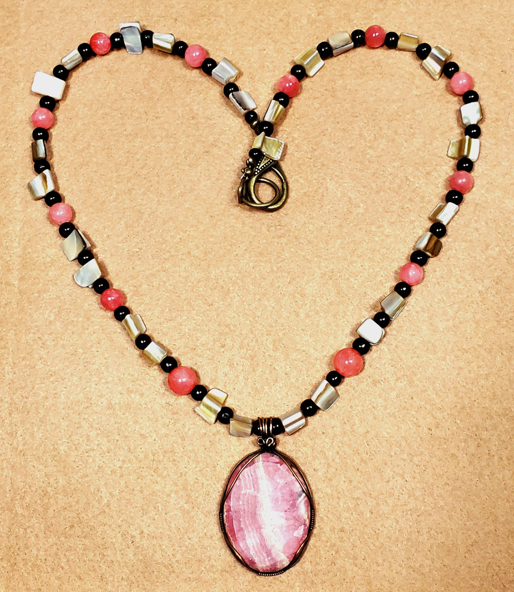 Rhodochrosite Cabochon: Rose Quarts & Abalone