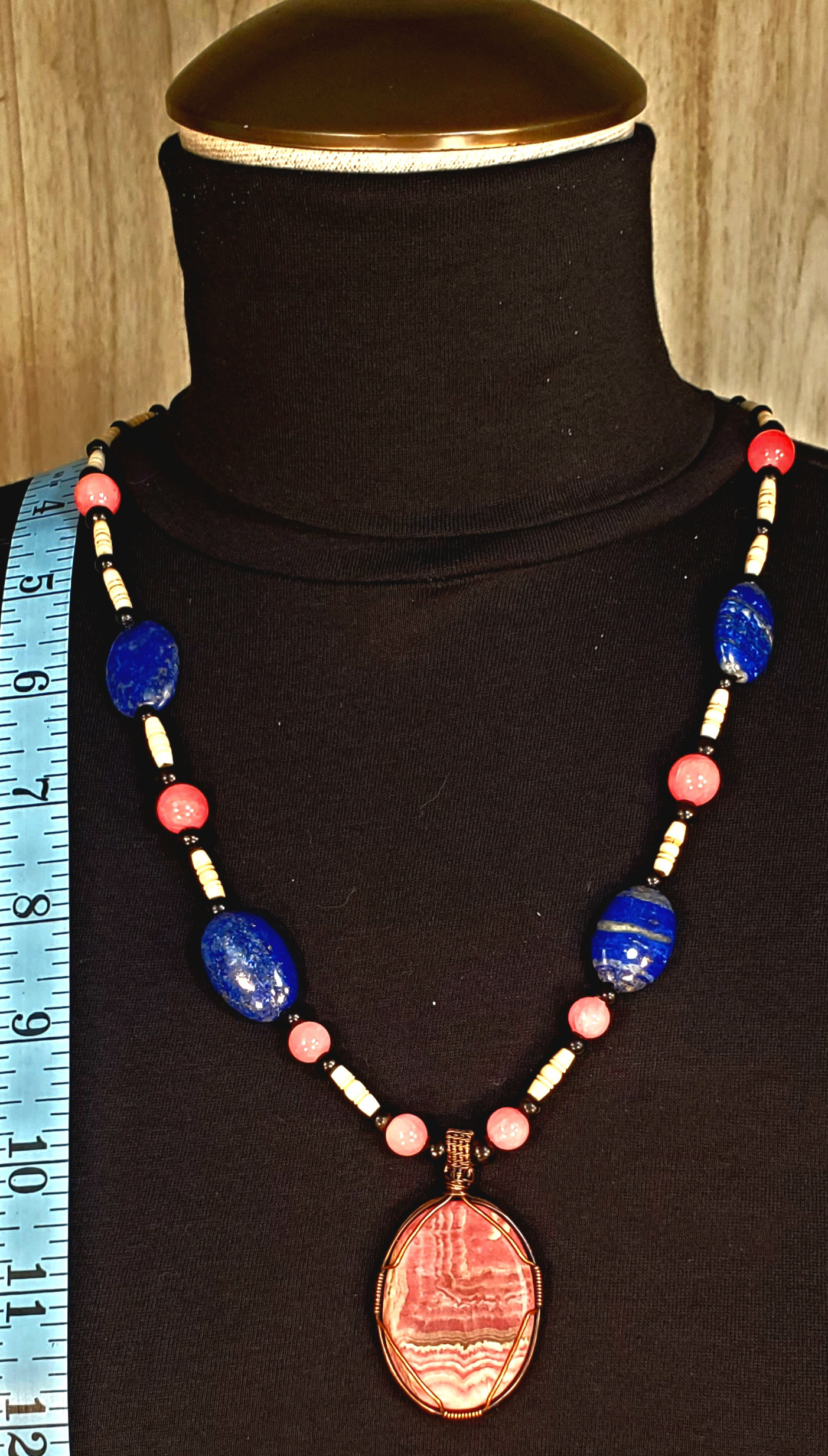 Rhodochrosite Cabochon: Rose Quarts, Lapis & Bone
