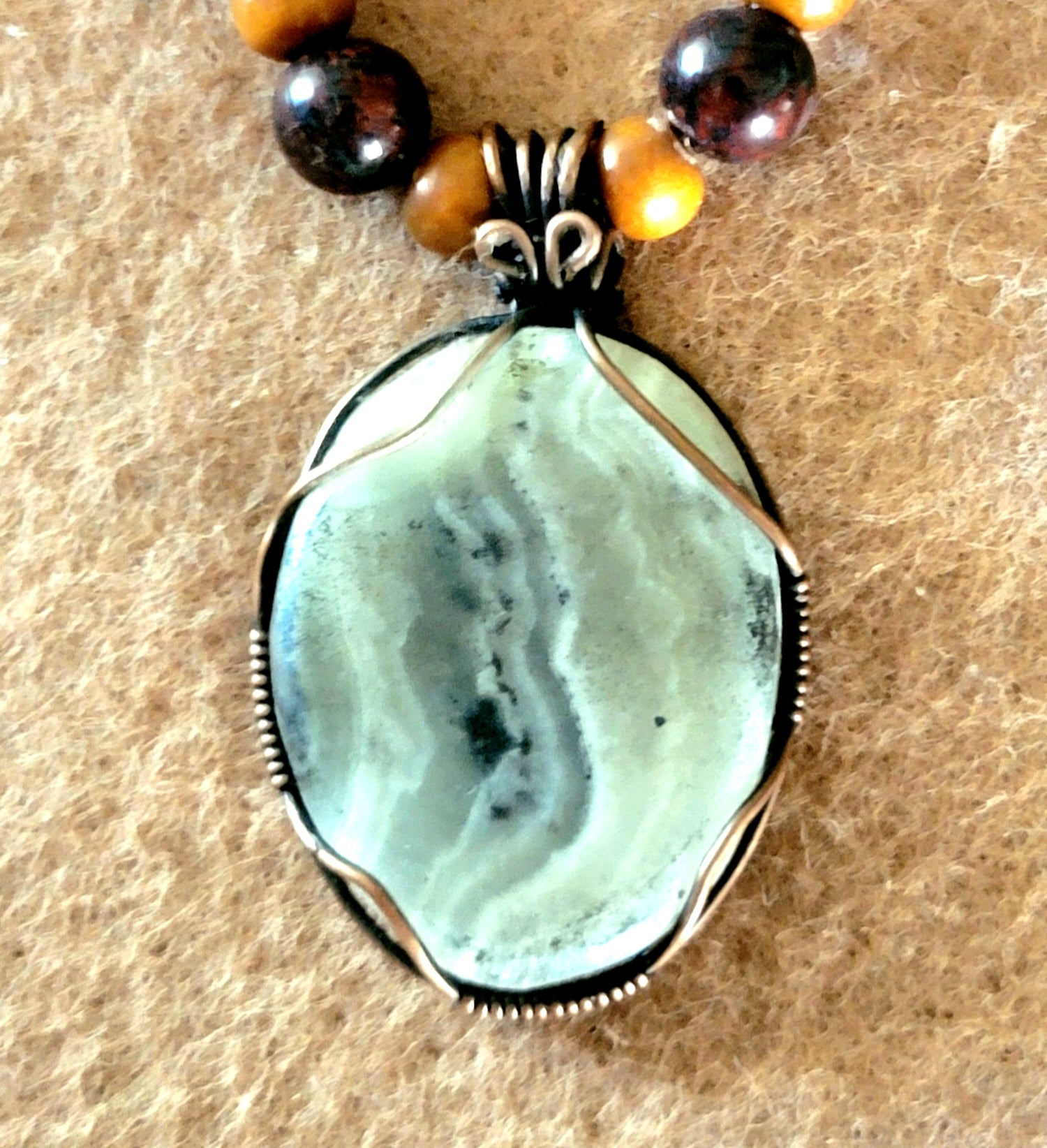 Silver Lace Onyx Pendant: Carnelian, Blood stone, Pyrite & Bone