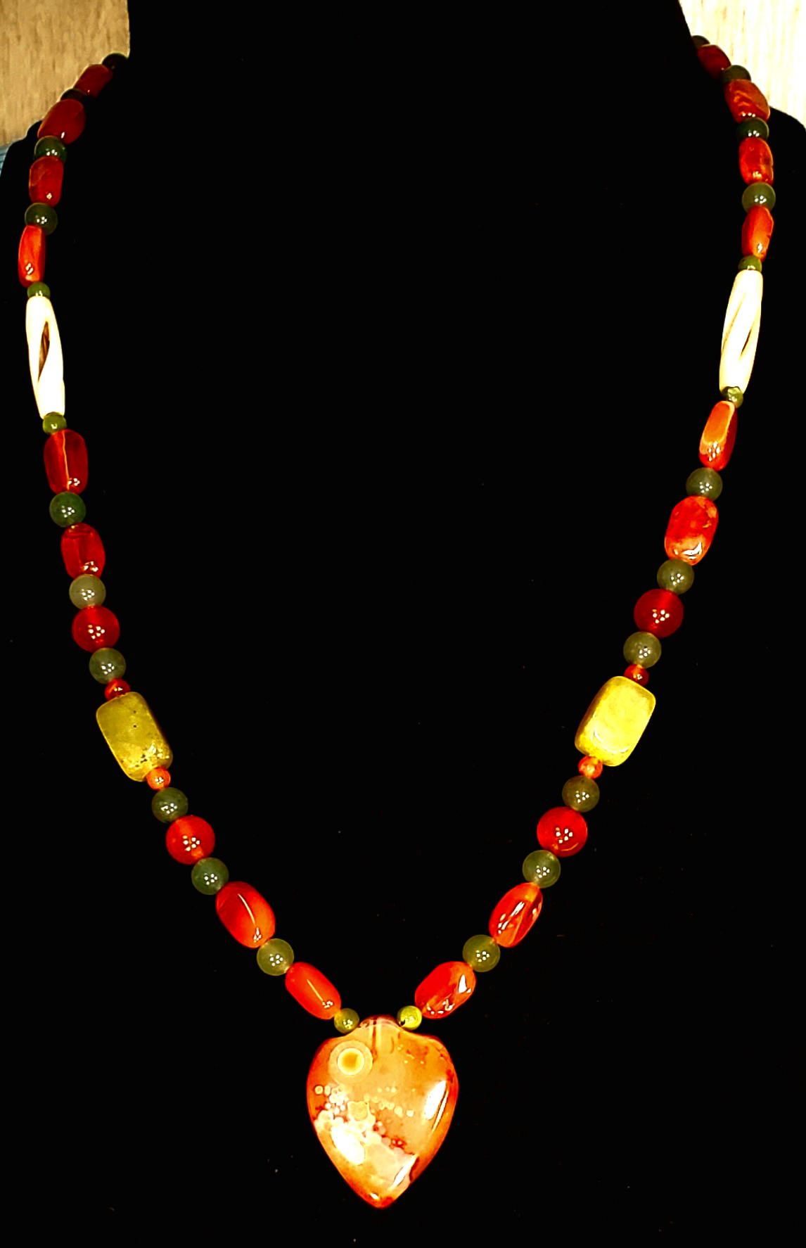 Indus Valley Carnelian Pendant: Chrysoprase, Adventurine, Bone & Jade